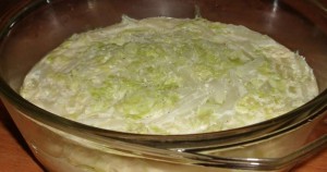 - Омлетную смесь выливаем в жаропрочную форму для запекания. Форму можно не смазывать или использовать рафинированное оливковое масло.